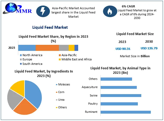 The global Liquid Feed Market is witnessing sustained growth momentum, supported by rising livestock populations, increasing meat and dairy consumption, and the growing need for efficient and cost-effective animal nutrition solutions. Valued at USD 90.31 billion in 2023, the market is projected to grow at a compound annual growth rate (CAGR) of 6% between 2024 and 2030, reaching nearly USD 135.79 billion by 2030.