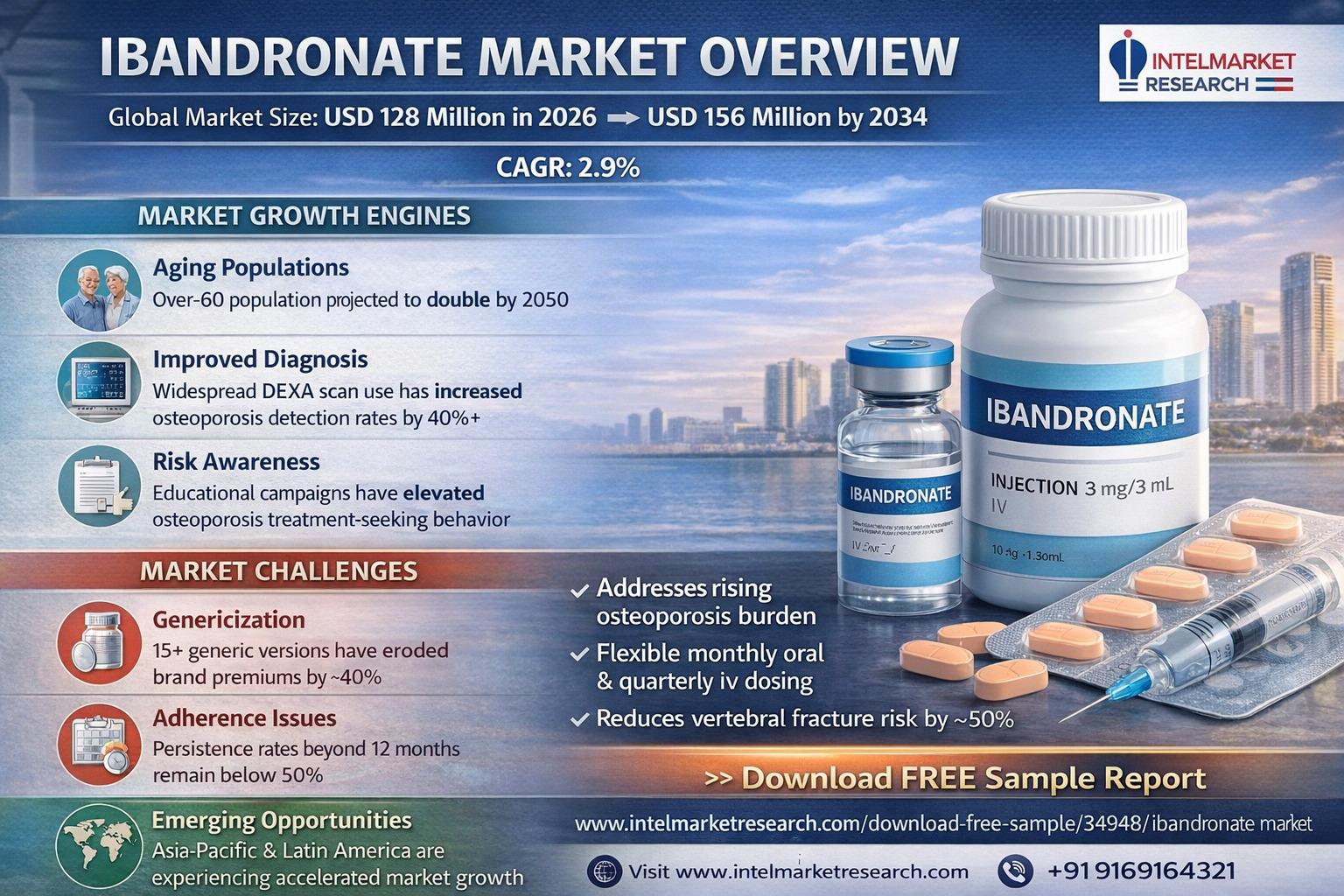 According to the latest market intelligence from Intel Market Research, Global Ibandronate market was valued at USD 128 million in 2025 and is projected to reach USD 156 million by 2034, growing at a steady CAGR of 2.9% during the forecast period (2026–2034). This growth trajectory reflects the increasing global burden of osteoporosis and rising demand for effective bone density management solutions, particularly among aging populations.