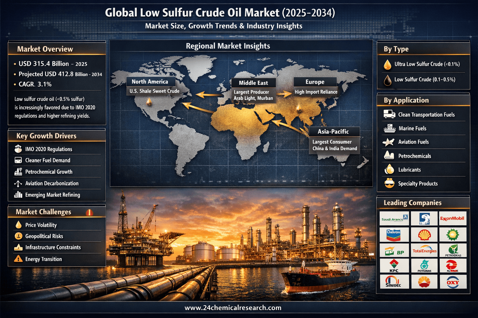 According to 24Chemical Research, Global Low Sulfur Crude Oil market size was valued at USD 315.4 billion in 2025 and is projected to reach USD 412.8 billion by 2034, exhibiting a CAGR of 3.1% during the forecast period.