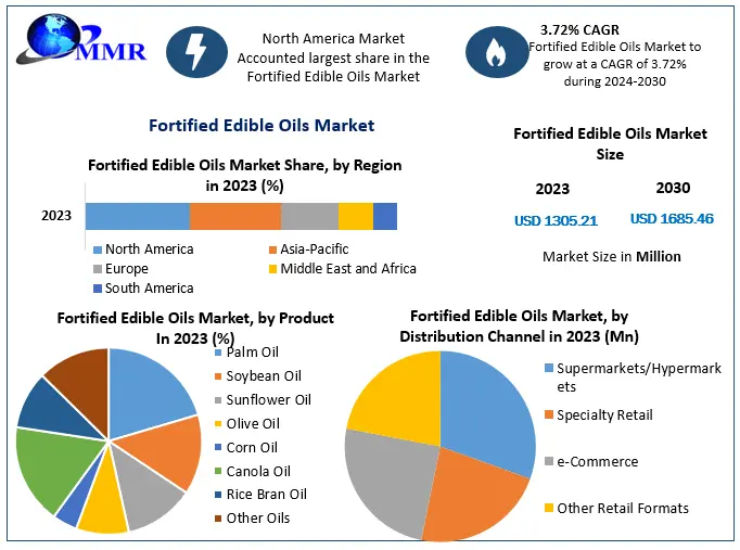 The global Fortified Edible Oils Market is witnessing steady growth as governments, health organizations, and food manufacturers increasingly focus on addressing micronutrient deficiencies and improving public health through nutrition-based interventions. According to recent market analysis, the fortified edible oils market was valued at USD 1,305.21 million in 2023 and is projected to reach approximately USD 1,685.46 million by 2030, expanding at a compound annual growth rate (CAGR) of 3.72% during the forecast period.