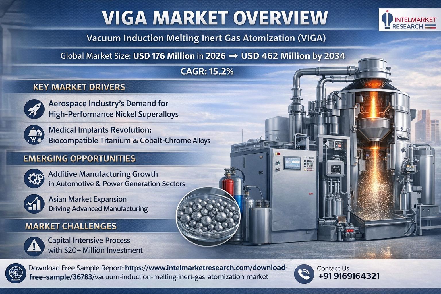 According to a new report from Intel Market Research, Global Vacuum Induction Melting Inert Gas Atomization (VIGA) market was valued at USD 176 million in 2026 and is projected to reach USD 462 million by 2034, growing at an impressive CAGR of 15.2% during the forecast period (2026-2034). This significant growth trajectory reflects the rising demand for high-performance metal powders across critical industries and technological advancements in metallurgical processes.