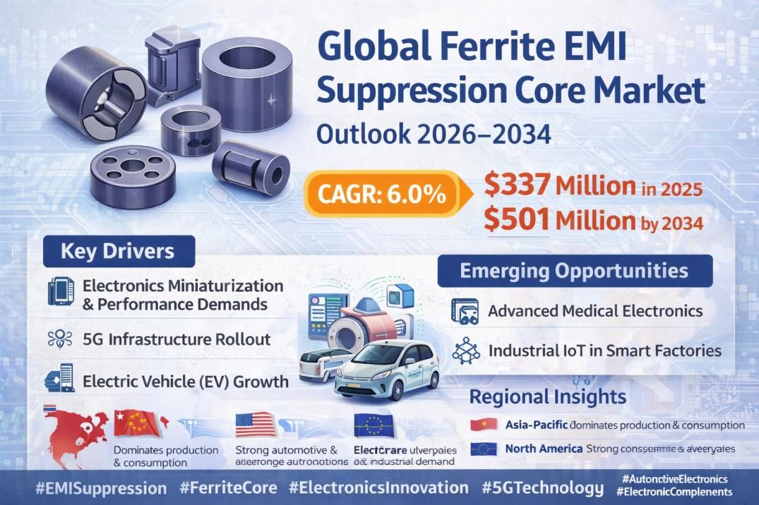 According to a new report from Intel Market Research, the global Ferrite EMI Suppression Core market was valued at USD 337 million in 2025 and is projected to reach USD 501 million by 2034, growing at a steady CAGR of 6.0% during the forecast period (2026-2034). This growth trajectory reflects the escalating demand for electromagnetic interference mitigation across multiple industries and the rapid technological advancements in electronic components.