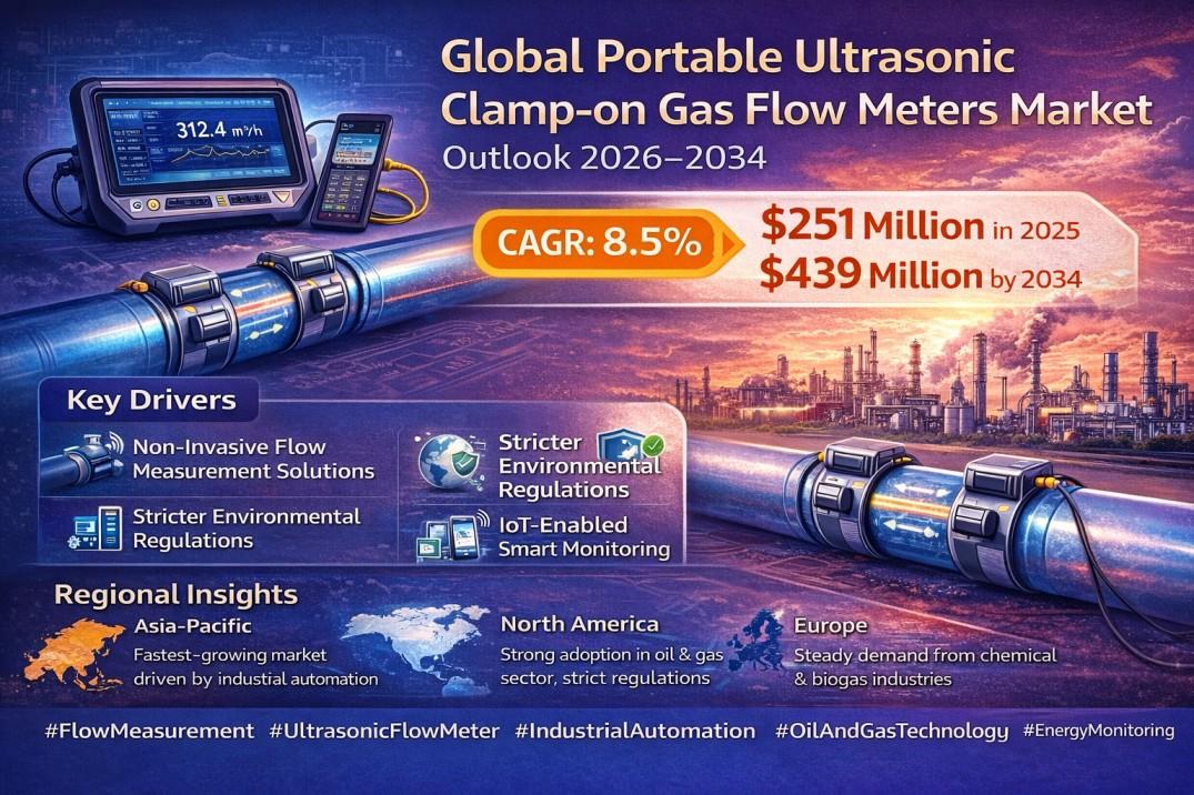 Global Portable Ultrasonic Clamp-on Gas Flow Meters Market Projected to Reach USD 439 Million by 2034, Growing at a CAGR of 8.5%; Key Players and Trends