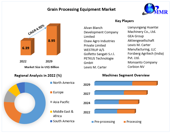 The global Grain Processing Equipment Market is experiencing steady growth as food manufacturers and agricultural producers increasingly adopt advanced machinery to improve productivity, quality, and efficiency in grain processing operations. According to the latest industry analysis, the market was valued at US$ 6.39 billion in 2022 and is projected to reach nearly US$ 8.95 billion by 2029, expanding at a compound annual growth rate (CAGR) of 4.92% during the forecast period of 2023–2029.