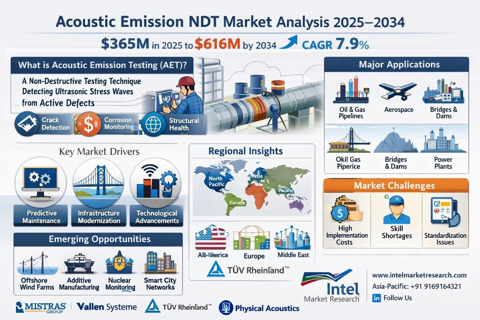 According to new analysis from Intel Market Research, the global Acoustic Emission NDT market was valued at USD 365 million in 2025 and is projected to reach USD 616 million by 2034, growing at a steady CAGR of 7.9% during the forecast period (2026–2034). This expansion reflects increasing adoption across critical infrastructure sectors where structural integrity monitoring is paramount.