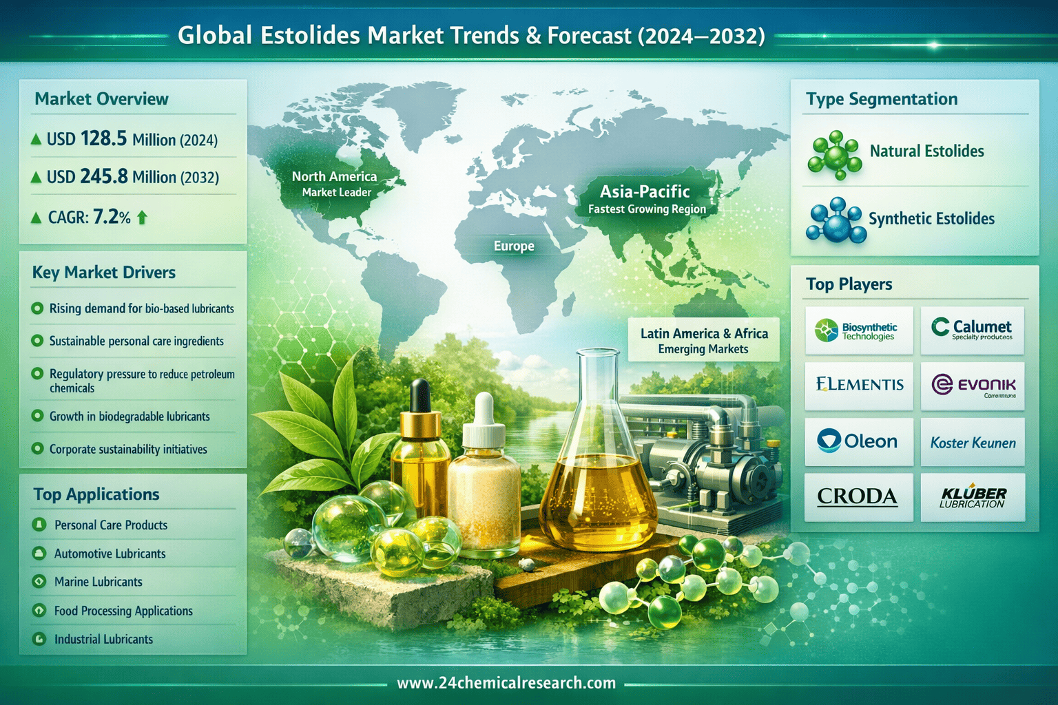 Global Estolides Market Projected to Reach 245.8 Million by 2034 from 128.5 Million in 2026
