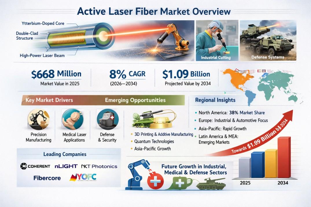 Global Active Laser Fiber Market Projected to Reach USD 1,089 Million by 2034, Growing at a CAGR of 8.0% from 2026–2034