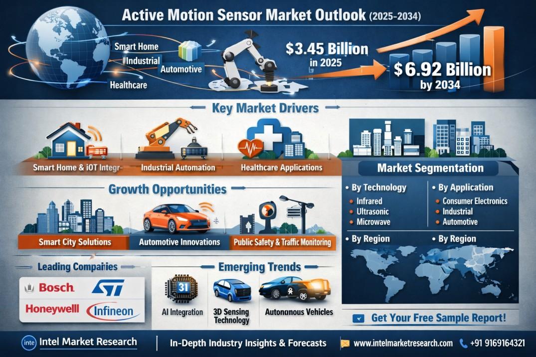 According to a new report from Intel Market Research, the global Active Motion Sensor market was valued at USD 3.45 billion in 2025 and is projected to reach USD 6.92 billion by 2034, growing at a steady CAGR of 7.8% during the forecast period (2025-2034). This growth is fueled by increasing demand for smart home automation, industrial automation advancements, and the integration of IoT technologies across multiple sectors.