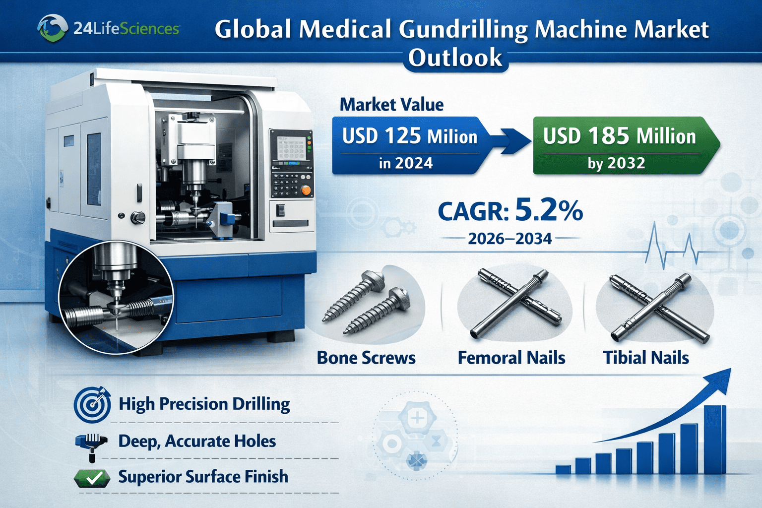 According to a newly published market research report by 24LifeSciences, global medical gundrilling machine market was valued at USD 125 million in 2024 and is projected to reach USD 185 million by 2032, growing at a compound annual growth rate (CAGR) of 5.2% during the forecast period 2026–2034.