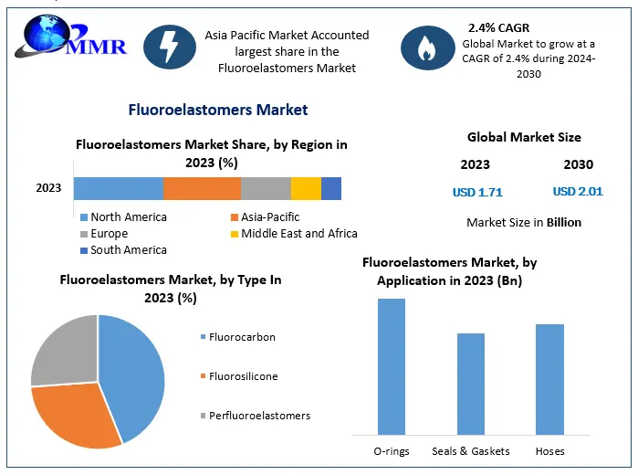 The Fluoroelastomers Market is witnessing steady growth as industries increasingly demand materials capable of operating under extreme temperatures, aggressive chemicals, and high-pressure environments. According to recent market analysis, the Fluoroelastomers Market size was valued at USD 1.71 Billion in 2023 and is expected to reach nearly USD 2.01 Billion by 2030, growing at a CAGR of 2.4% during the forecast period (2024–2030).
