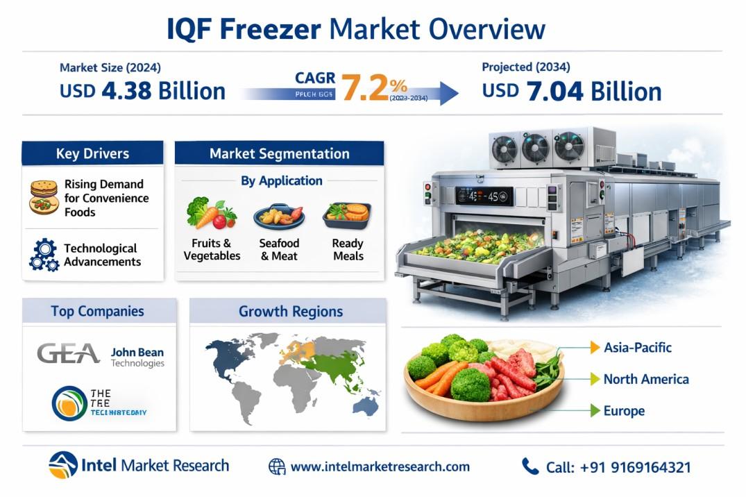According to a new report from Intel Market Research, the global IQF freezer market was valued at USD 4.38 billion in 2024 and is projected to reach USD 7.04 billion by 2034, growing at a CAGR of 7.2% during the forecast period (2026–2034). This growth is driven by increasing demand for frozen convenience foods, technological advancements in freezing equipment, and expanding applications across food processing industries.