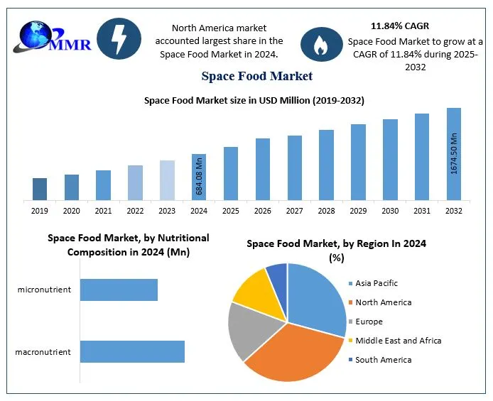 The global Space Food Market is entering a transformative phase as space exploration accelerates beyond low-Earth orbit and into long-duration missions targeting the Moon, Mars, and deep space. Valued at USD 684.08 million in 2024, the market is projected to grow at a robust CAGR of 11.84% from 2025 to 2032, reaching nearly USD 1,674.50 million by 2032. This expansion reflects rising investments by government space agencies and private aerospace companies in advanced food technologies that ensure astronaut health, mission sustainability, and psychological well-being during extended space travel.