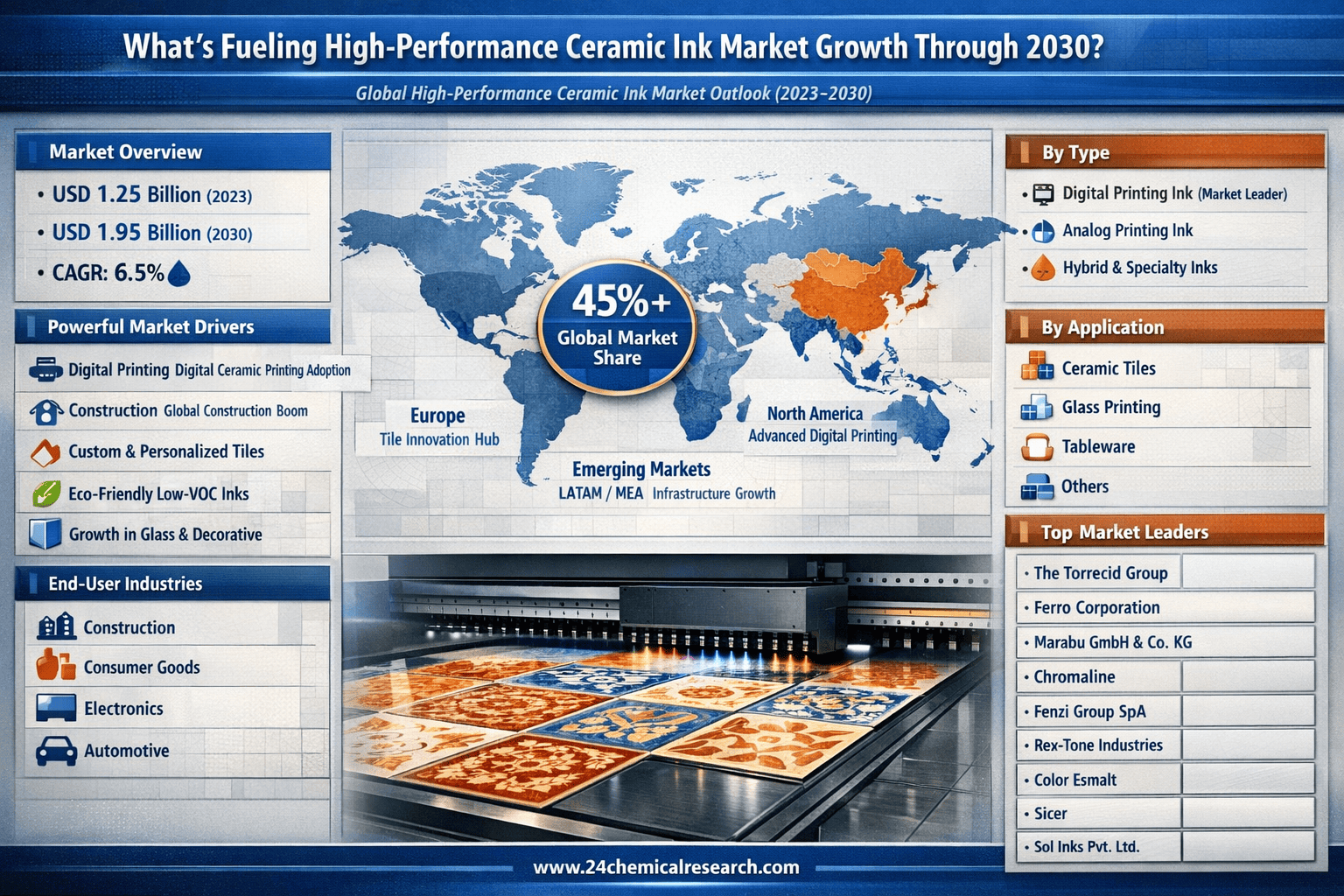 According to 24Chemical Research, Global High-performance Ceramic Ink market was valued at USD 1.25 billion in 2023 and is projected to reach USD 1.95 billion by 2030, exhibiting a remarkable CAGR of 6.5% during the forecast period.