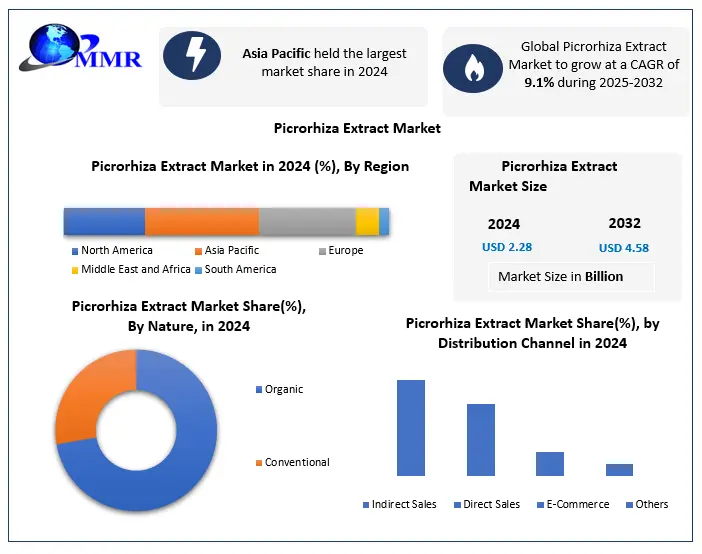 The Global Picrorhiza Extract Market is gaining strong momentum as consumers, healthcare providers, and pharmaceutical manufacturers increasingly shift toward natural, plant-based therapeutic solutions. Valued at USD 2.28 Billion in 2024, the market is projected to grow at a compound annual growth rate (CAGR) of 9.1% from 2025 to 2032, reaching nearly USD 4.58 Billion by 2032. This growth trajectory reflects the rising integration of traditional herbal medicine into modern healthcare systems, supported by scientific validation, regulatory acceptance, and expanding applications across pharmaceuticals, nutraceuticals, and personal care.