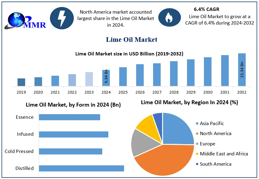 The global lime oil market is poised for robust growth over the next decade, driven by the increasing demand for natural, organic, and multifunctional ingredients across multiple industries. Rising consumer awareness, coupled with innovations in application and production methods, is expected to propel the market to USD 15.34 billion by 2032. With sustainability, clean-label trends, and versatile benefits at the forefront, lime oil is set to remain a critical ingredient in health, wellness, and beauty industries worldwide.
