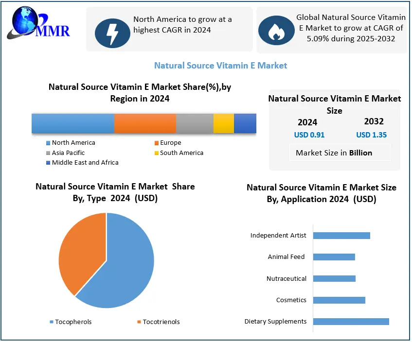 The global Natural Source Vitamin E Market was valued at USD 0.91 billion in 2024 and is projected to grow at a CAGR of 5.09% between 2025 and 2032, reaching nearly USD 1.35 billion by the end of the forecast period. Natural source vitamin E, recognized as a potent antioxidant, is increasingly becoming a staple nutrient in dietary supplements, functional foods, cosmetics, and nutraceuticals due to its wide-ranging health benefits and preventive healthcare potential.