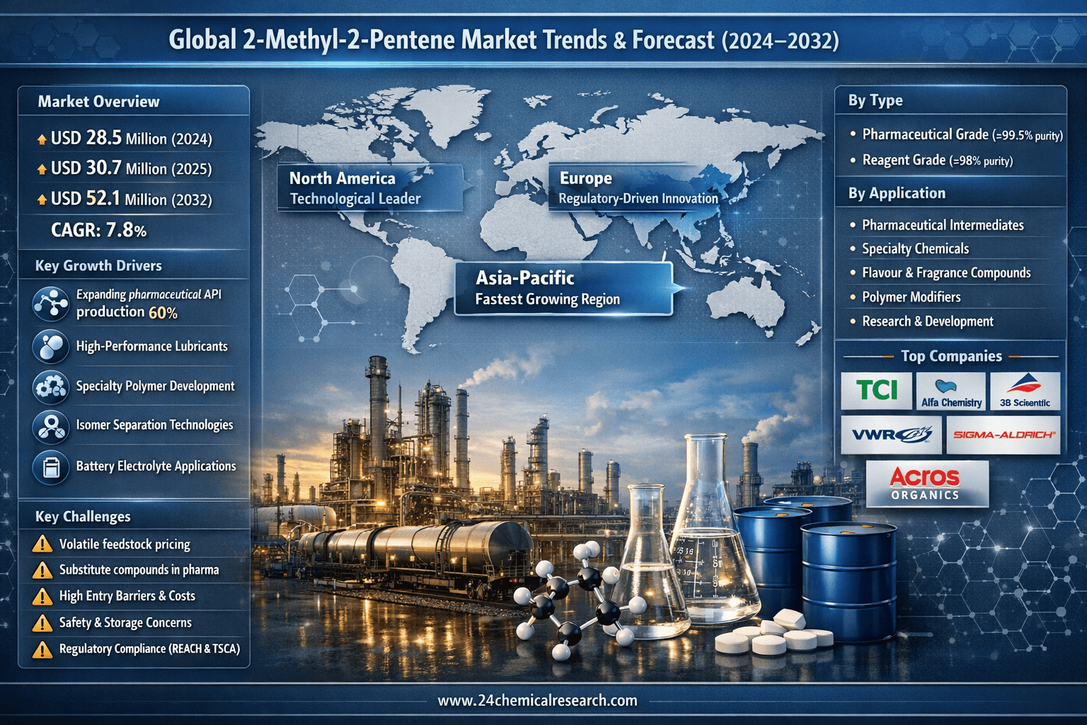 According to 24Chemical Research, Global 2-Methyl-2-Pentene market size was valued at USD 28.5 million in 2024. The market is projected to grow from USD 30.7 million in 2025 to USD 52.1 million by 2032, exhibiting a CAGR of 7.8% during the forecast period.