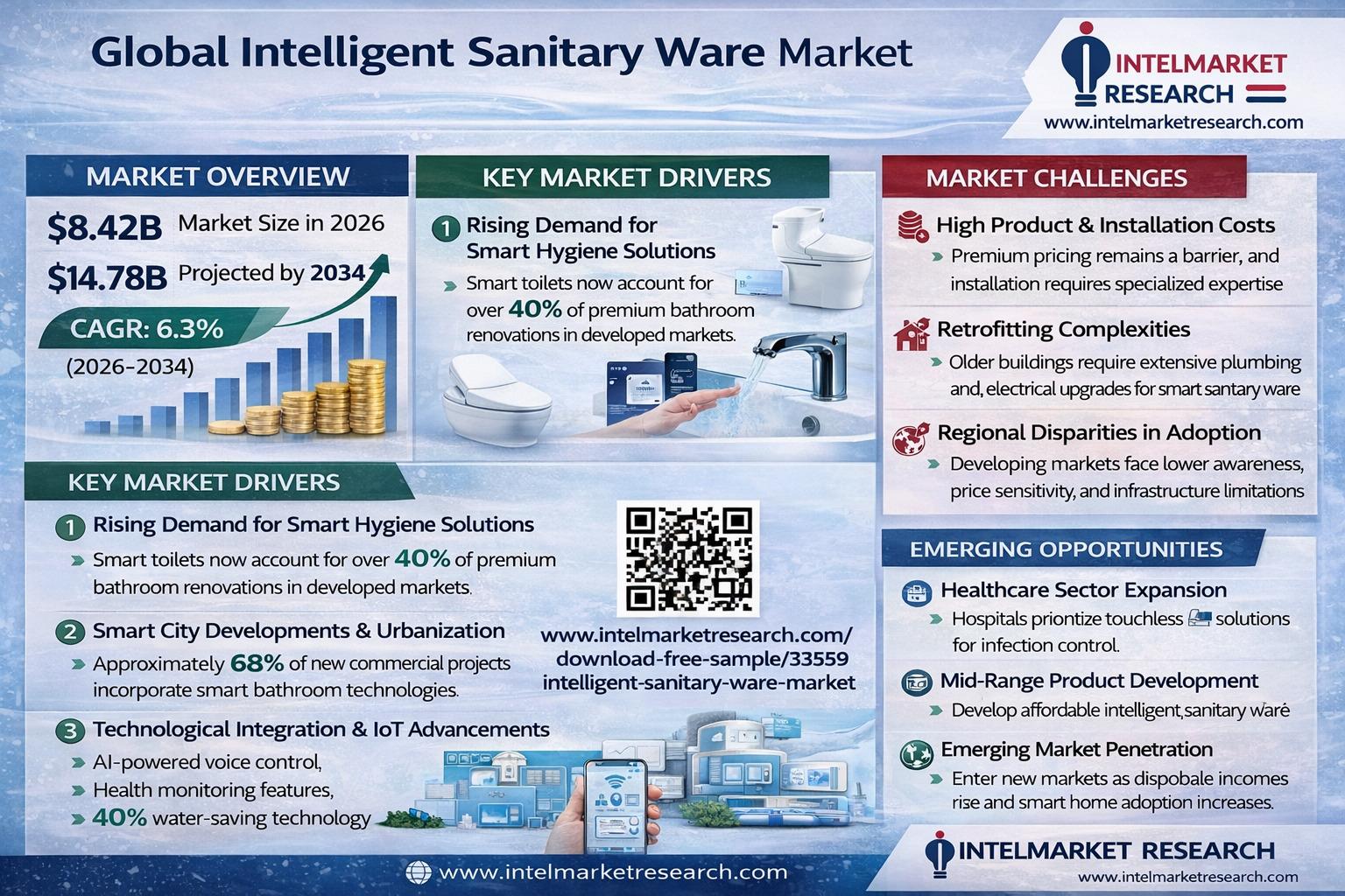 According to a new report from Intel Market Research, Global Intelligent Sanitary Ware market was valued at USD 8.42 billion in 2025 and is projected to reach USD 14.78 billion by 2034, growing at a CAGR of 6.3% during the forecast period (2026–2034). This growth is driven by increasing urbanization, rising disposable incomes, and growing consumer demand for smart bathroom solutions with advanced hygiene features.