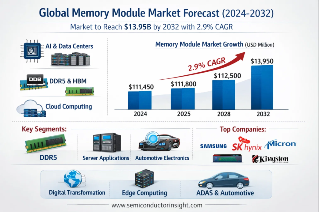 Memory Module Market to Reach $13.95B by 2032 Driven by AI, Data Centers, DDR5, and Cloud Growth